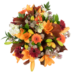 Brighten up the chilly days with our luxurious and colorful bouquet, featuring a vibrant blend of roses, gerberas, and alstroemeria. Each bloom is carefully selected to ensure exceptional freshness and beauty.